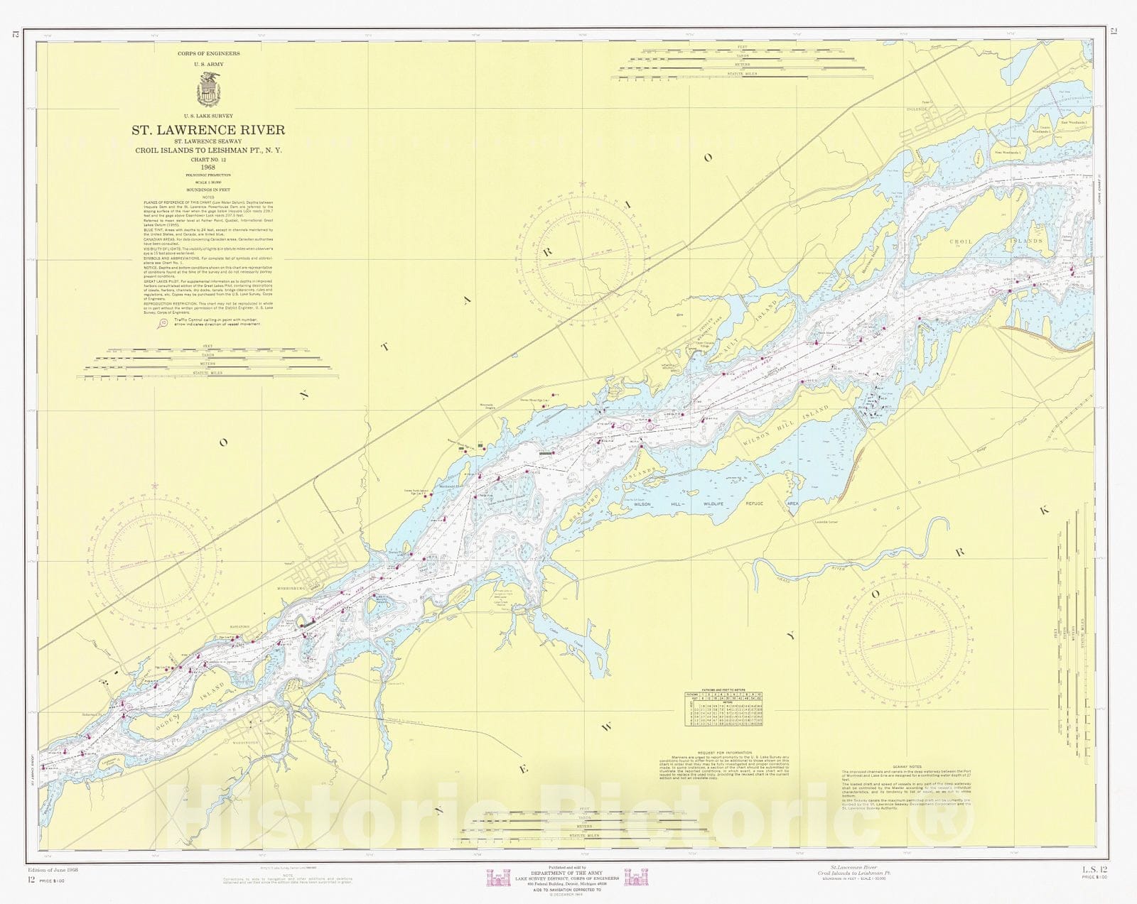 Historic Nautical Map - St Lawrence River Croil Islands To Leishman Pt, 1968 NOAA Chart - Vintage Wall Art
