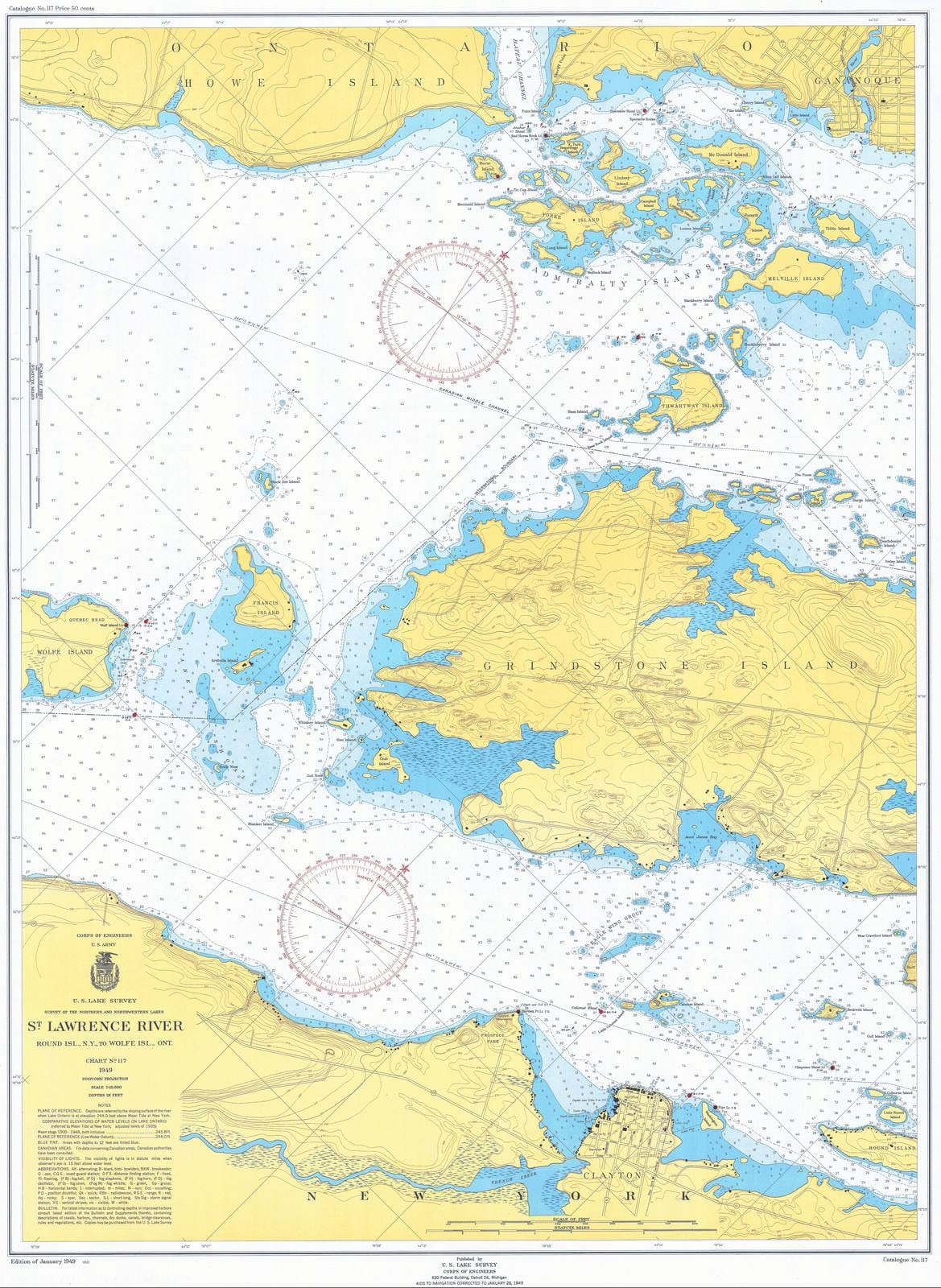NOAA Historic Map |St Lawrence River Bingham Isl Ont To Round Isl Ny | 1946 Nautical Chart