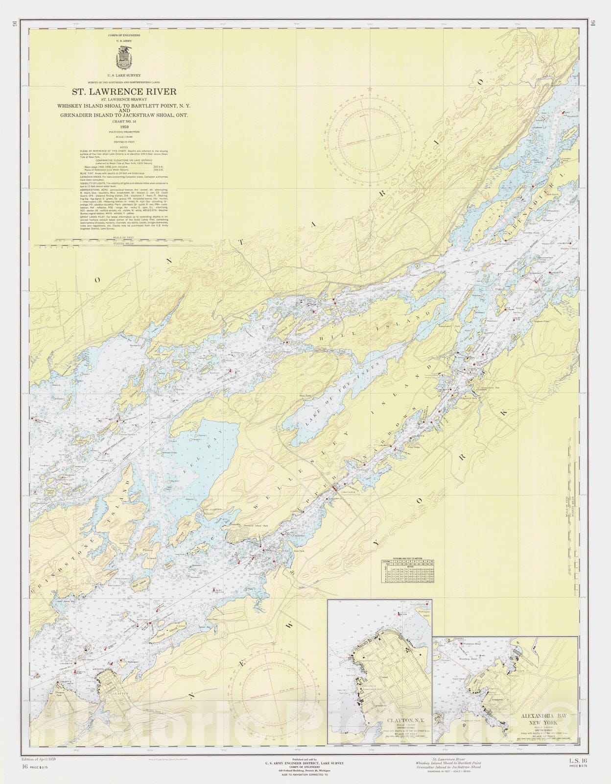 Historic Nautical Map - St Lawrence River Whiskey Island Shoal To Bartlett Point Grenadier Island To Jackstraw Shoal, 1959 NOAA Chart - Vintage Wall Art