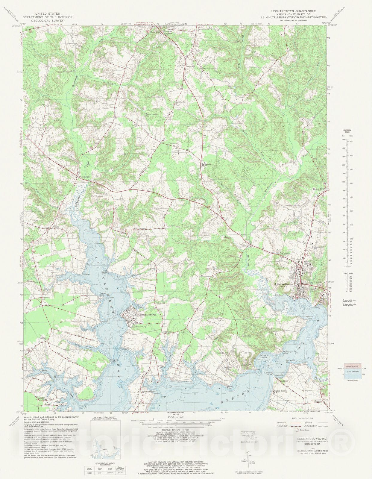 Historic Nautical Map - Leonardtown Md, MD, 1963 NOAA Topographic Bathymetric Historic Nautical Map - Vintage Wall Art