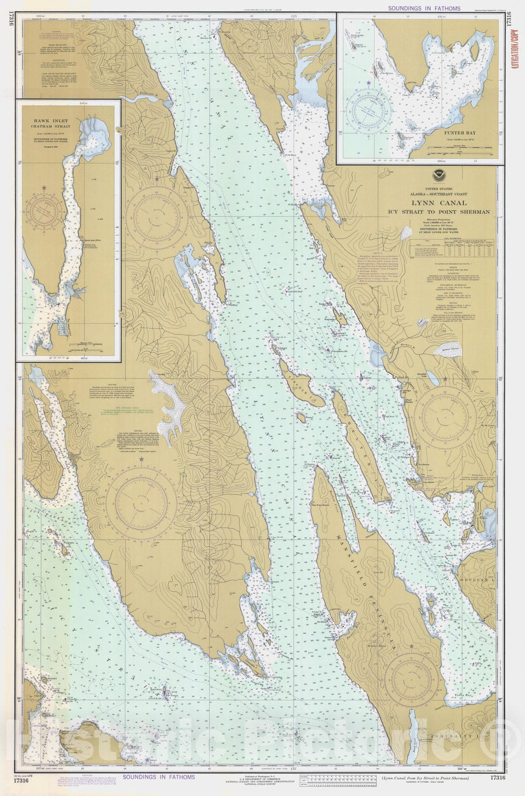 Historic Nautical Map - Lynn Canal Icy Strait To Point Sherman, AK, 1978 NOAA Chart - Vintage Wall Art