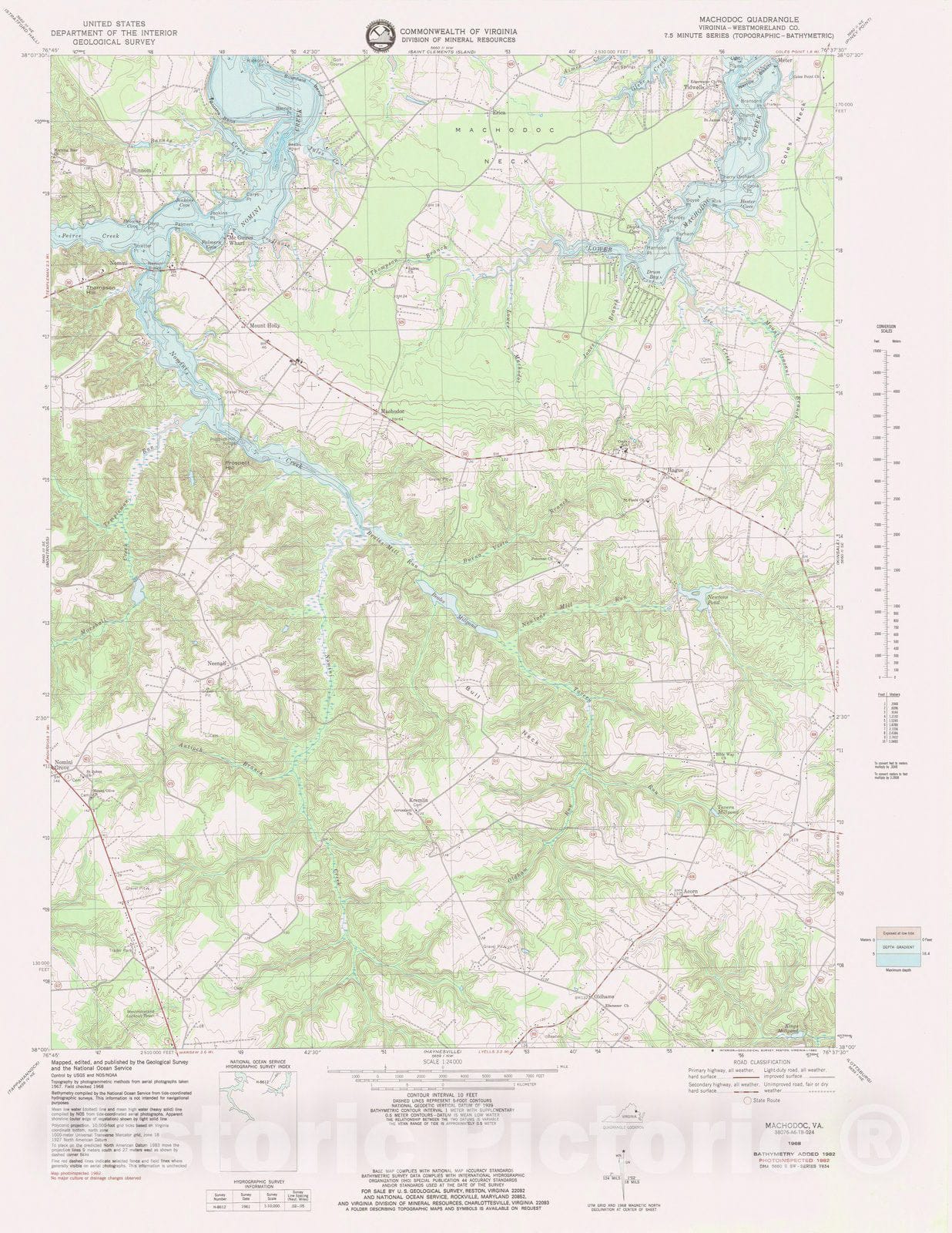 Historic Nautical Map - Machodoc Va, VA, 1968 NOAA Topographic Bathymetric Historic Nautical Map - Vintage Wall Art