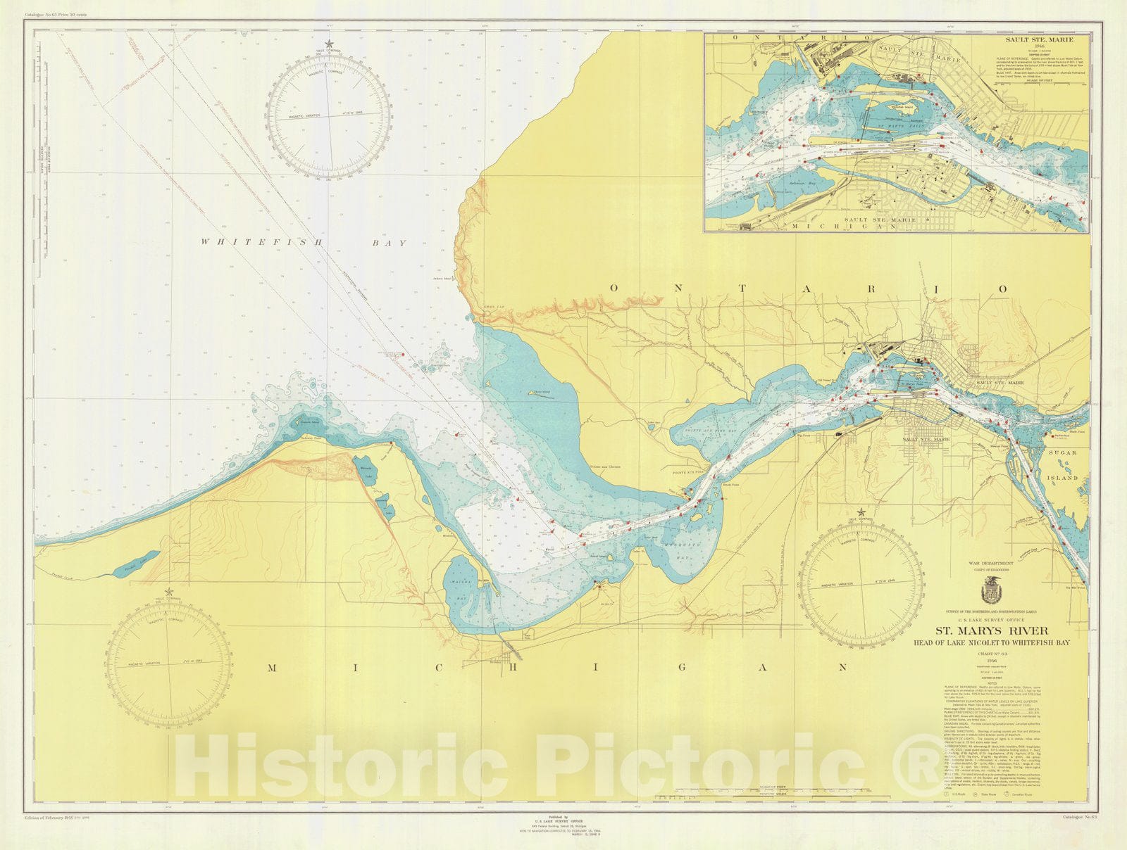 Historic Nautical Map - St Marys River Head Of Lake Nicolet To Whitefish Bay, 1946 NOAA Chart - Vintage Wall Art