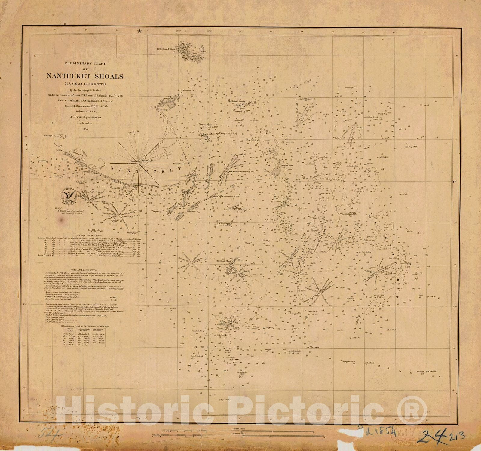 • .Historic Nautical Map - Nantucket Shoals, 1854 NOAA Chart - Vintage Wall Art