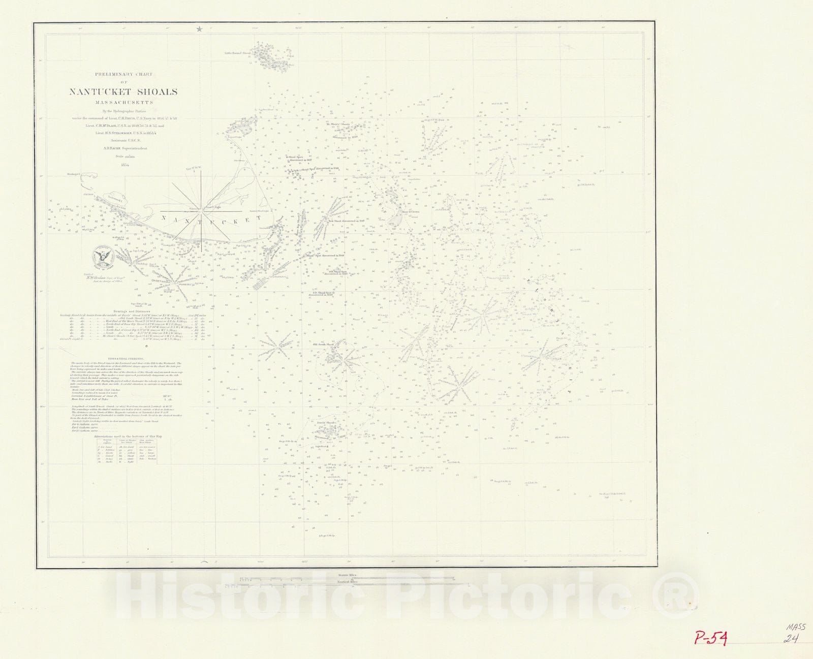 Historic Nautical Map - Nantucket Shoals, 1854 NOAA Chart - Vintage Wall Art, v2