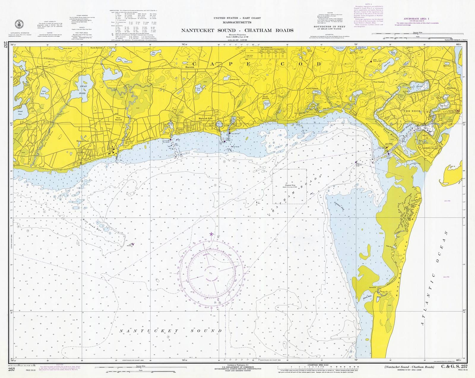 Historic Nautical Map - Nantucket Sound - Chatham Roads, 1970 NOAA Chart - Vintage Wall Art
