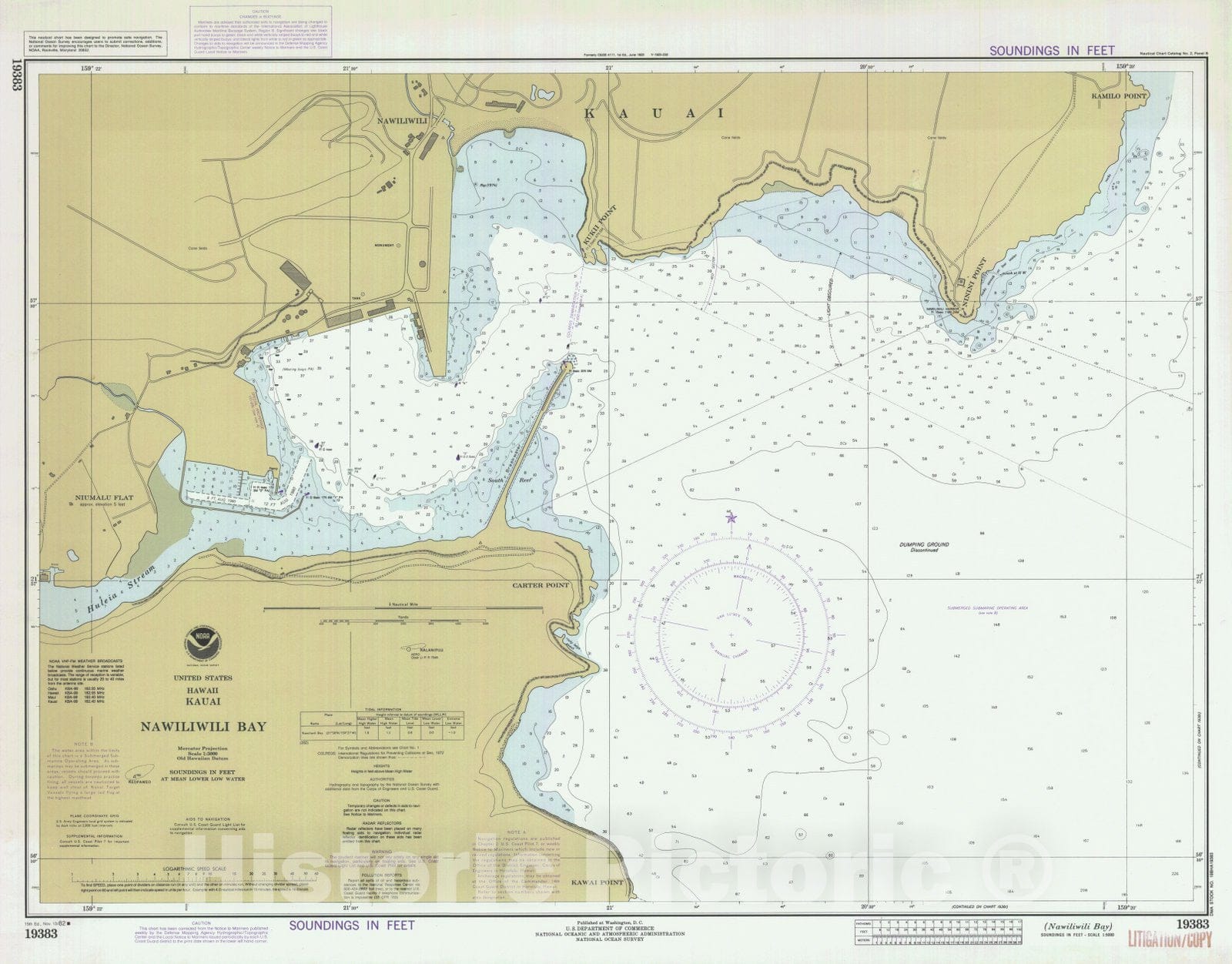 Historic Nautical Map - Nawiliwili Bay, HI, 1982 NOAA Chart - Vintage Wall Art