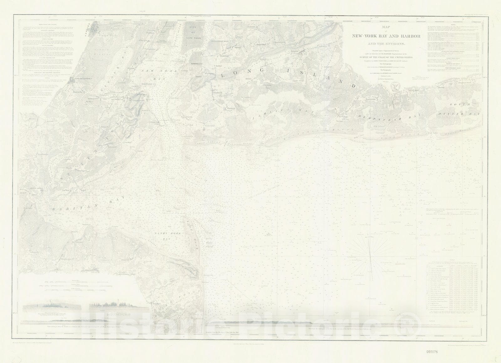 • .Historic Nautical Map - New York Bay And Harborand The Environs, 1845 NOAA Chart - Vintage Wall Art