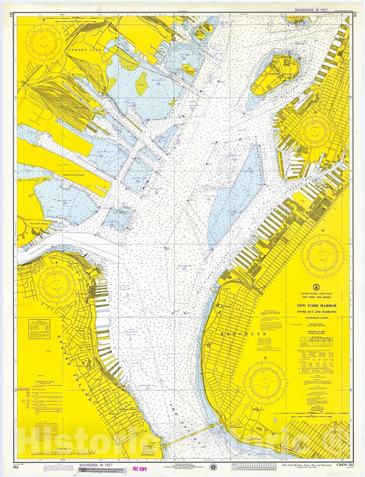 Historic Nautical Map - New York Harbor, Upper Bay And Narrows, 1974 NOAA Chart - New York (NY) - Vintage Wall Art