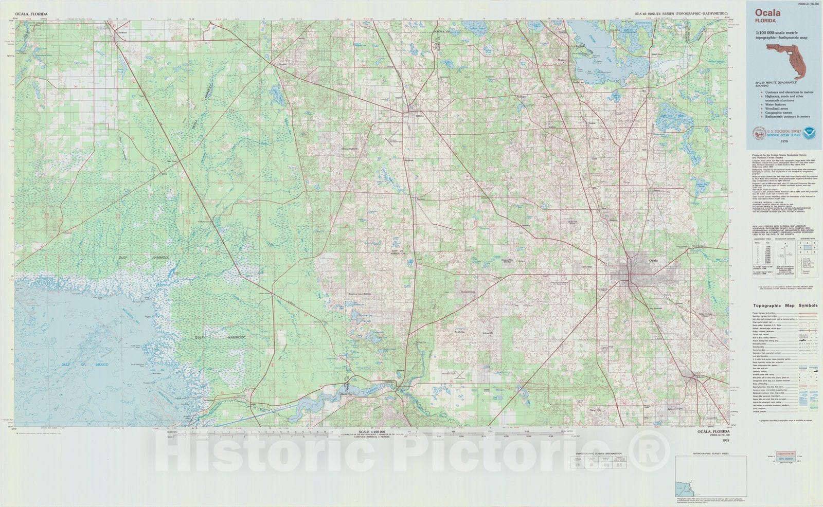 Historic Nautical Map - Ocala, FL, 1978 NOAA Topographic Bathymetric Historic Nautical Map - Vintage Wall Art