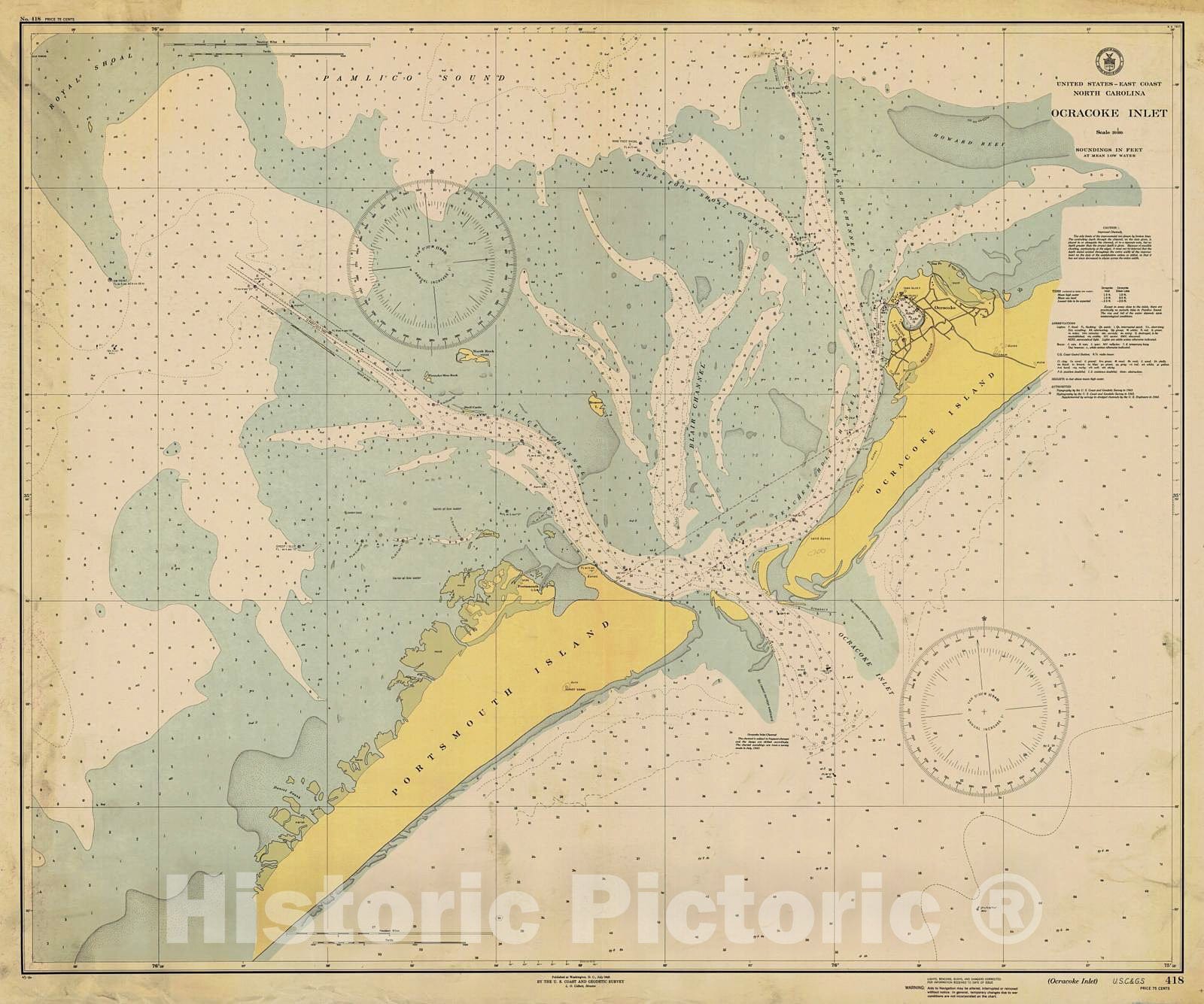 • .Historic Nautical Map - Ocracoke Inlet, 1945 NOAA Chart - North Carolina (NC) - Vintage Wall Art