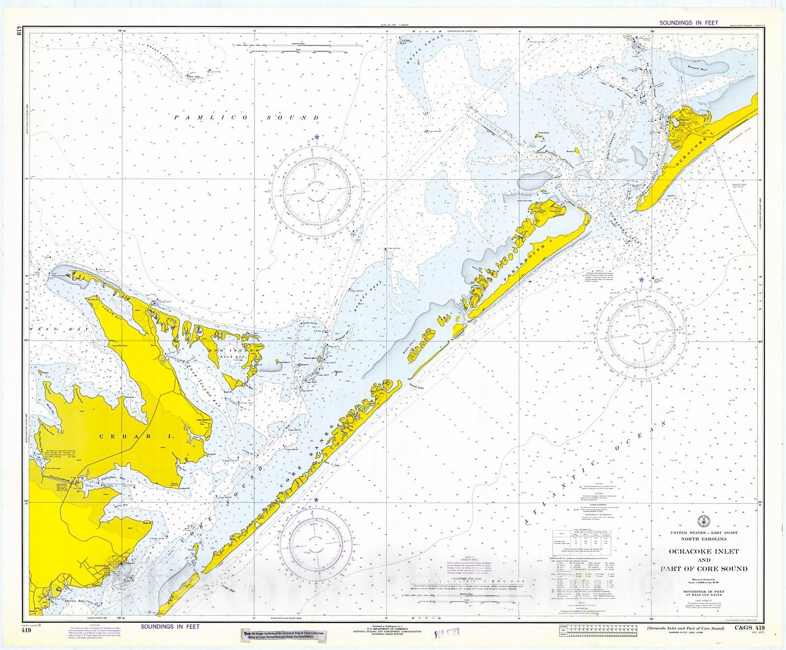 • .Historic Nautical Map - Ocracoke Inlet And Part Of Core Sound, 1972 NOAA Chart - North Carolina (NC) - Vintage Wall Art