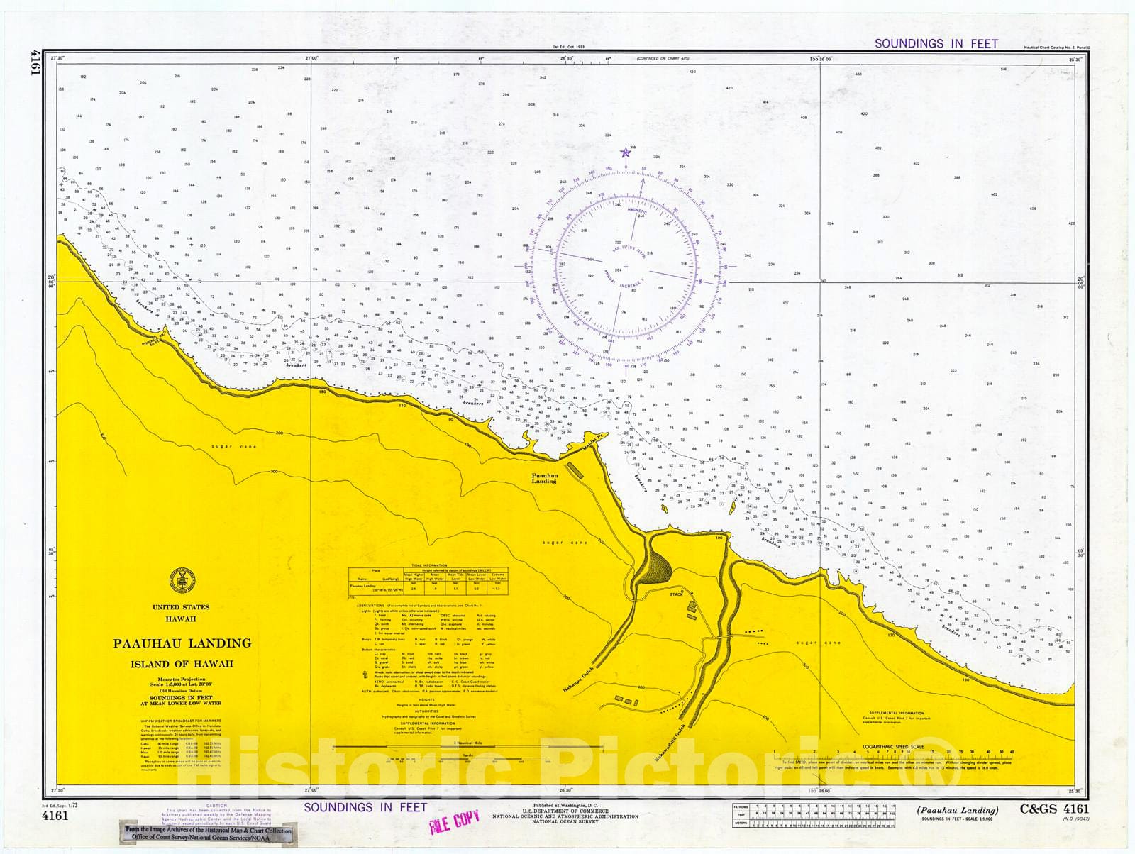 • .Historic Nautical Map - Paauhau Landing, 1973 NOAA Chart - Hawaii (HI) - Vintage Wall Art