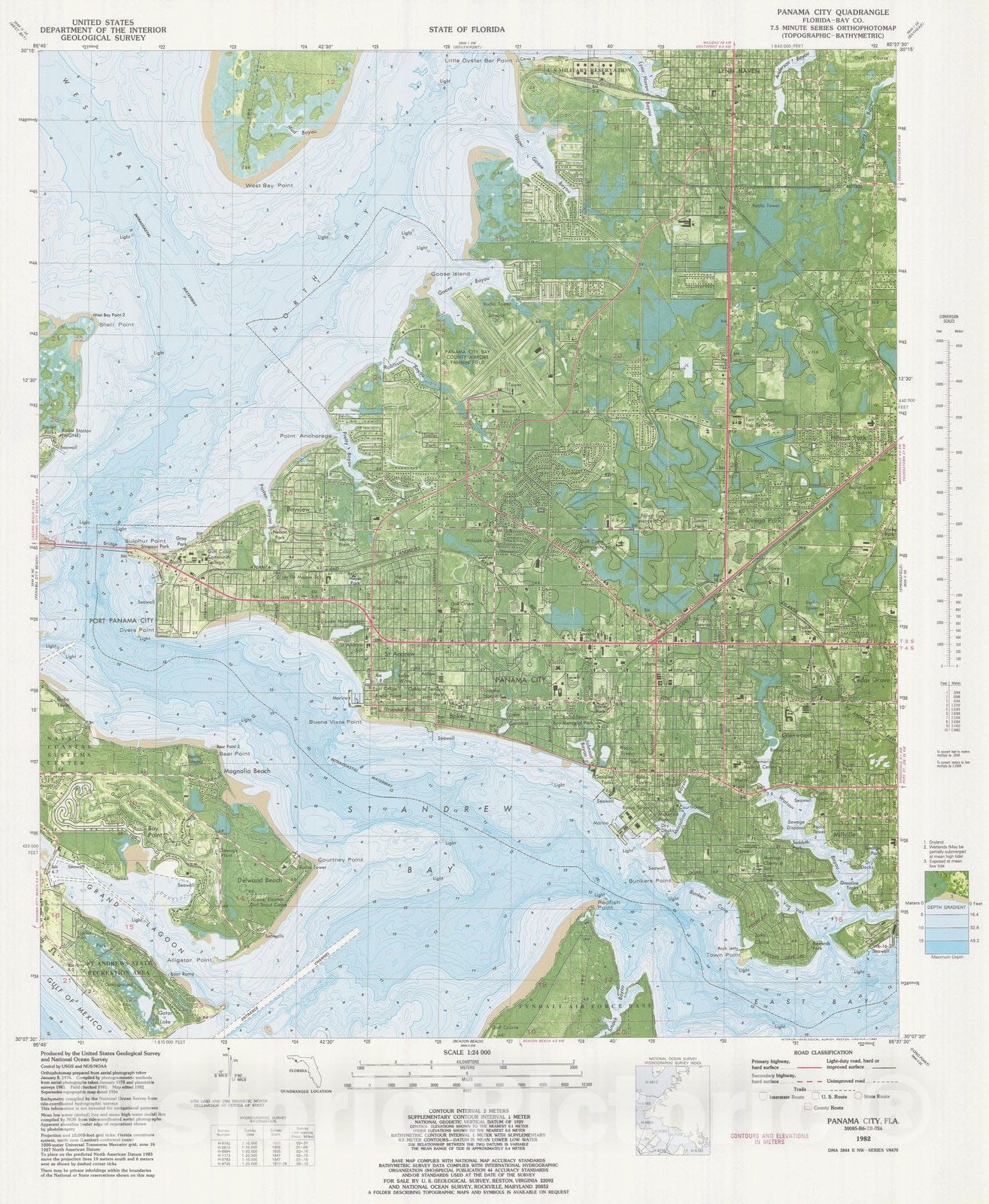 Historic Nautical Map - Panama City, FL, 1982 NOAA Topographic Bathymetric Historic Nautical Map - Vintage Wall Art