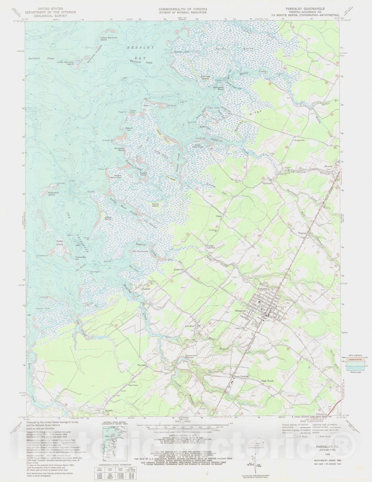 Historic Nautical Map - Parksley Va, VA, 1968 NOAA Topographic Bathymetric Historic Nautical Map - Vintage Wall Art