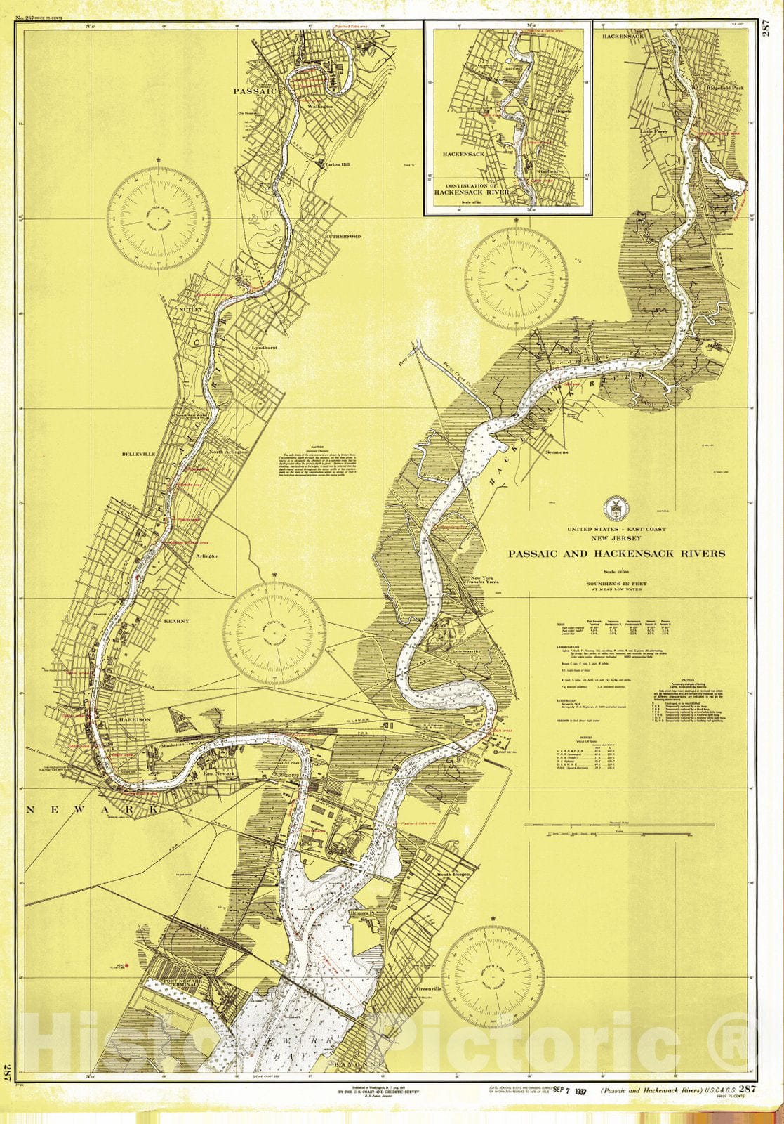• .Historic Nautical Map - Passaic And Hackensack Rivers, 1937 NOAA Chart - Vintage Wall Art