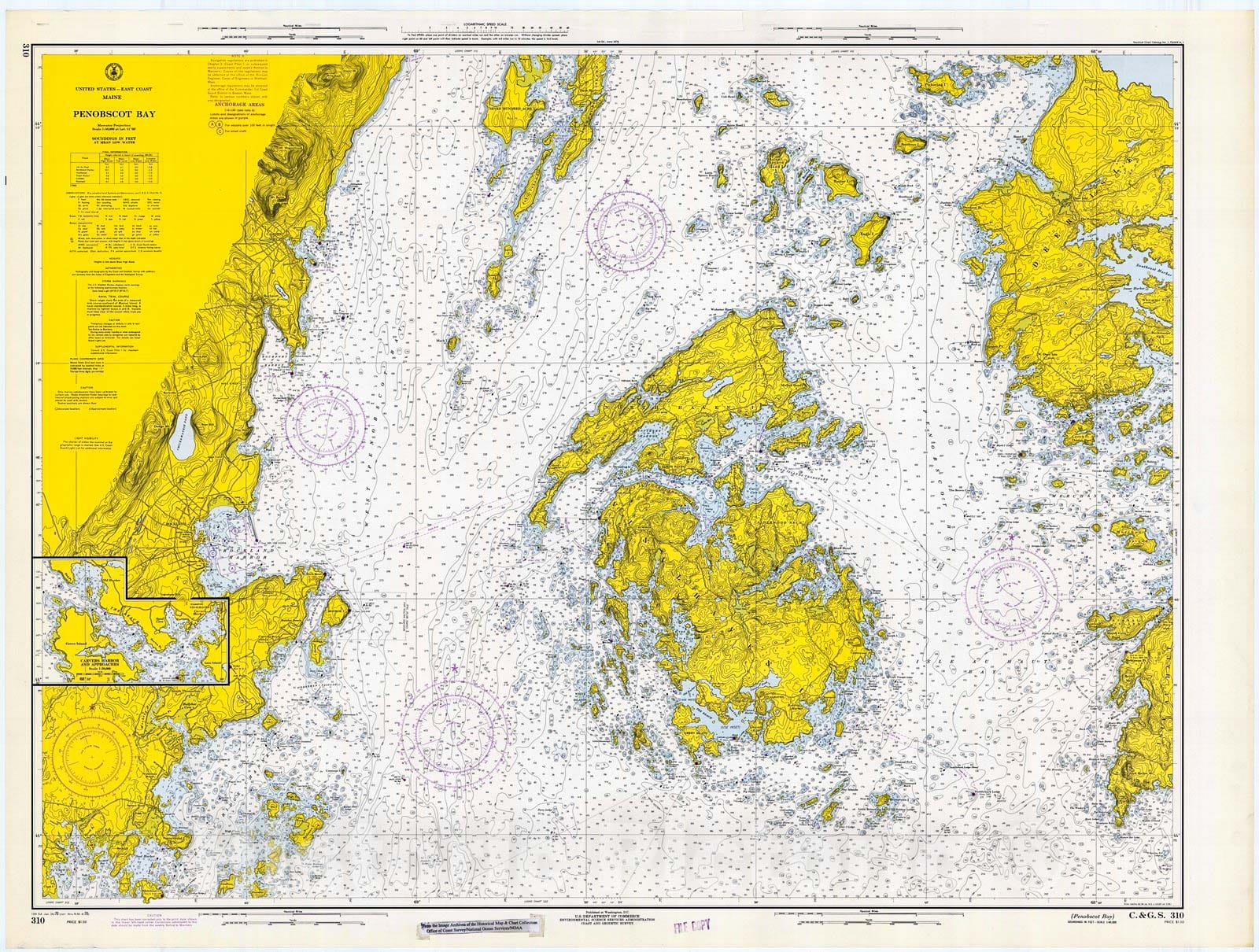 Historic Nautical Map - Penobscot Bay, 1970 NOAA Chart - Vintage Wall Art