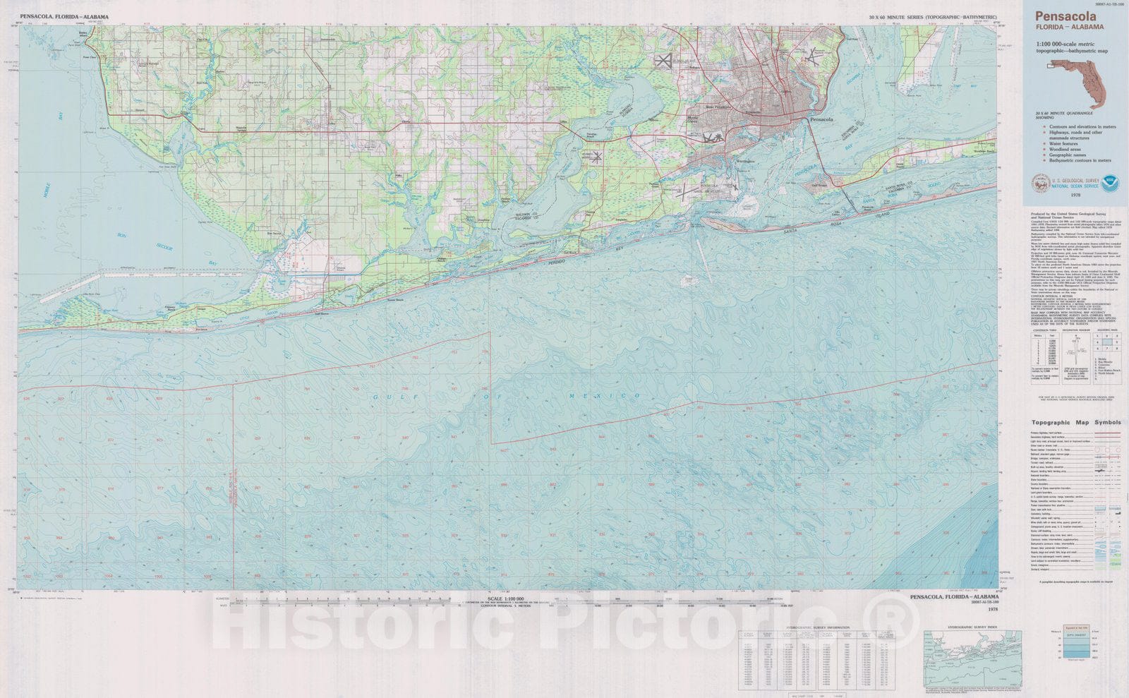 Historic Nautical Map - Pensacola, AL, FL, 1978 NOAA Topographic Bathymetric Historic Nautical Map - Vintage Wall Art