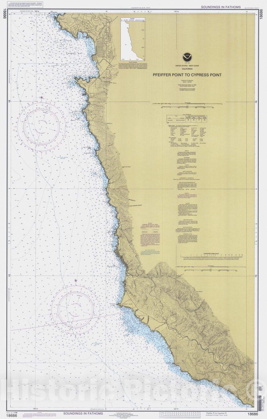 Historic Nautical Map - Pfeiffer Pt To Cypress Pt, CA, 1999 NOAA Chart - Vintage Wall Art