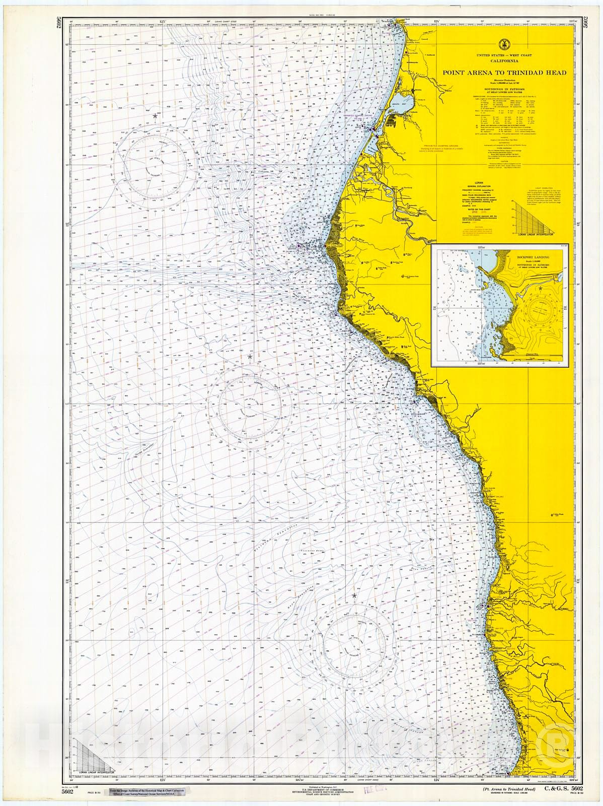 Historic Nautical Map - Point Arena To Trinidad Head, 1968 NOAA Chart - California (CA) - Vintage Wall Art