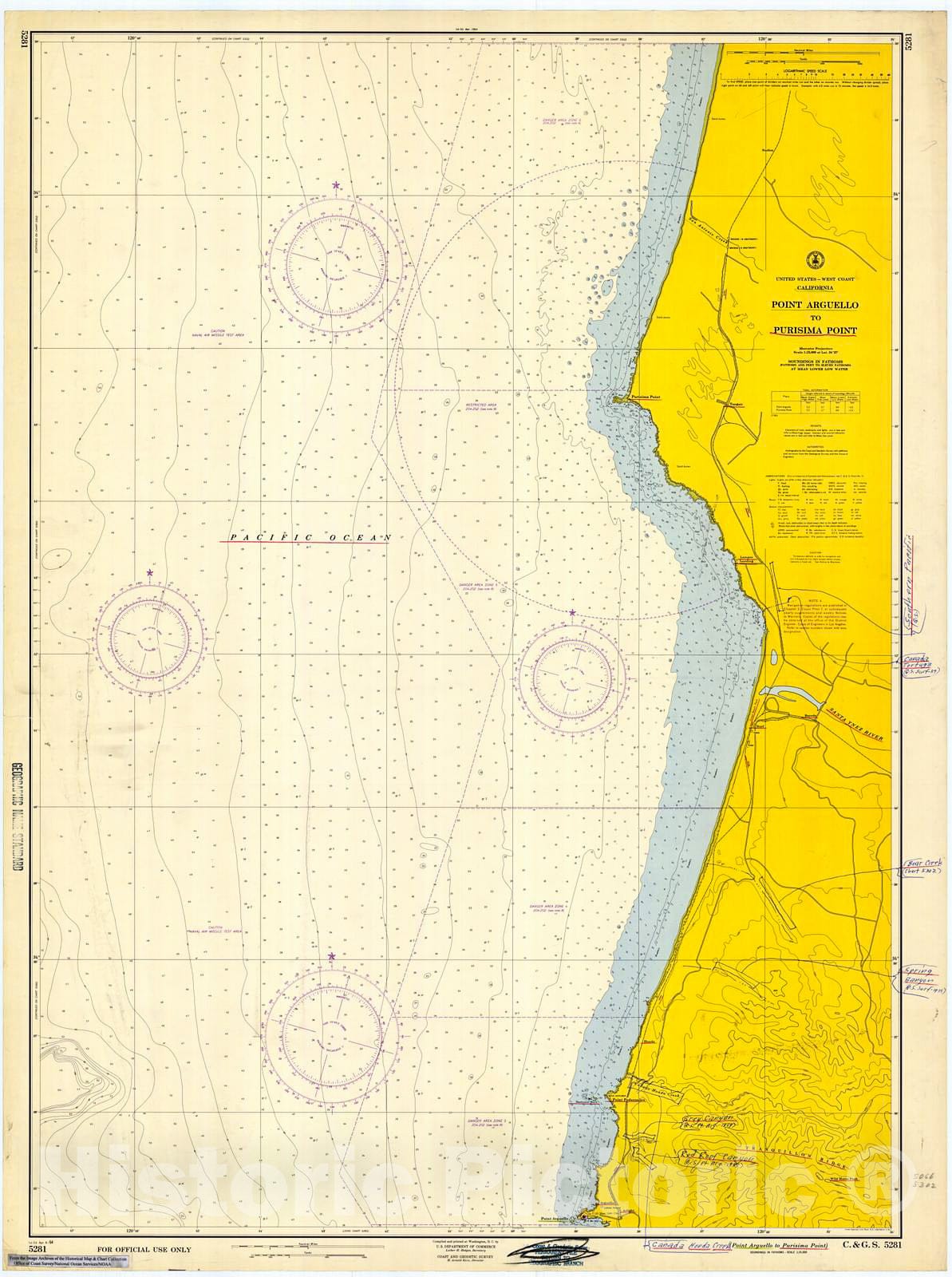 Historic Nautical Map - Point Arguello To Purisima Point, 1964 NOAA Chart - California (CA) - Vintage Wall Art