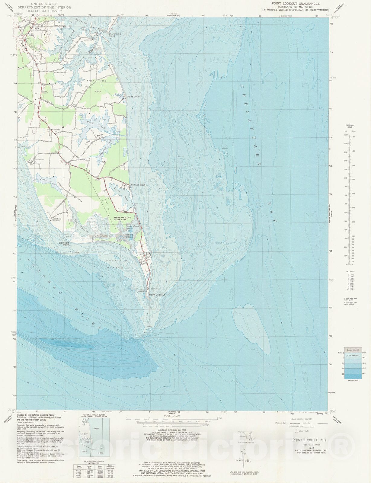 Historic Nautical Map - Point Lookout Md, MD, 1942 NOAA Topographic Bathymetric Historic Nautical Map - Vintage Wall Art