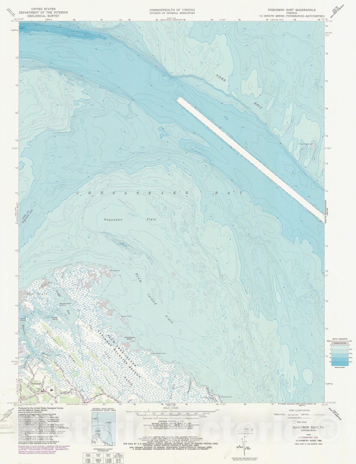 Historic Nautical Map - Poquoson East Va, VA, 1979 NOAA Topographic Bathymetric Historic Nautical Map - Vintage Wall Art