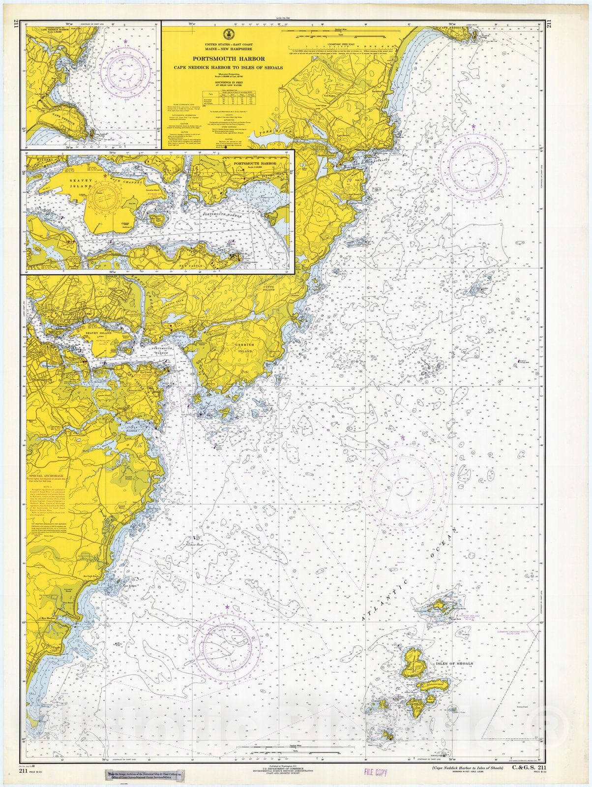 • .Historic Nautical Map - Portsmouth Harbor, Cape Neddick Harbor To Isles Of Shoals, Maine - New Hampshire, 1968 NOAA Chart - Vintage Wall Art