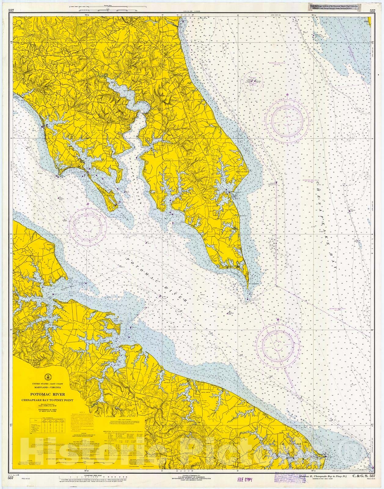 Historic Nautical Map - Potomac R, Chesapeake Bay To Piney Pt, 1968 NOAA Chart - Virginia (VA) - Vintage Wall Art