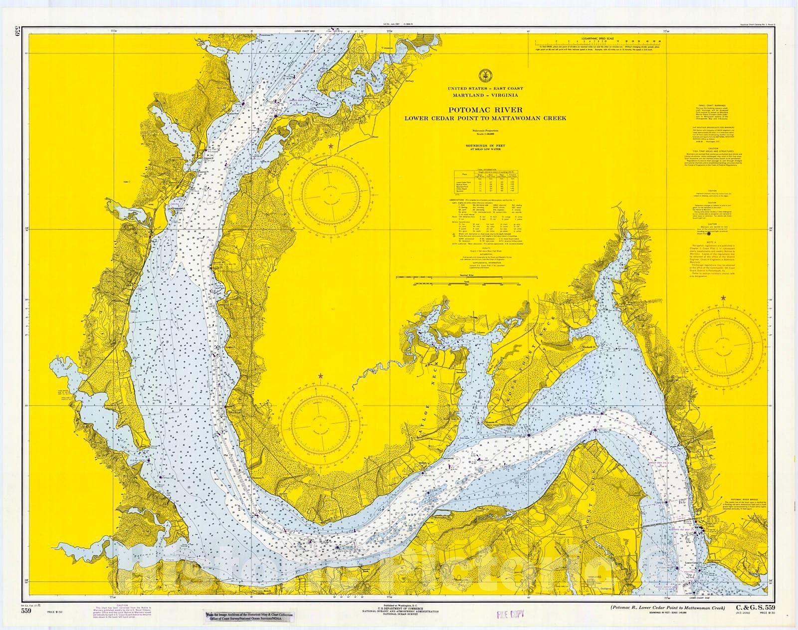 Historic Nautical Map - Potomac R, Lower Cedar Point To Mattawomen Creek, 1971 NOAA Chart - Virginia (VA) - Vintage Wall Art