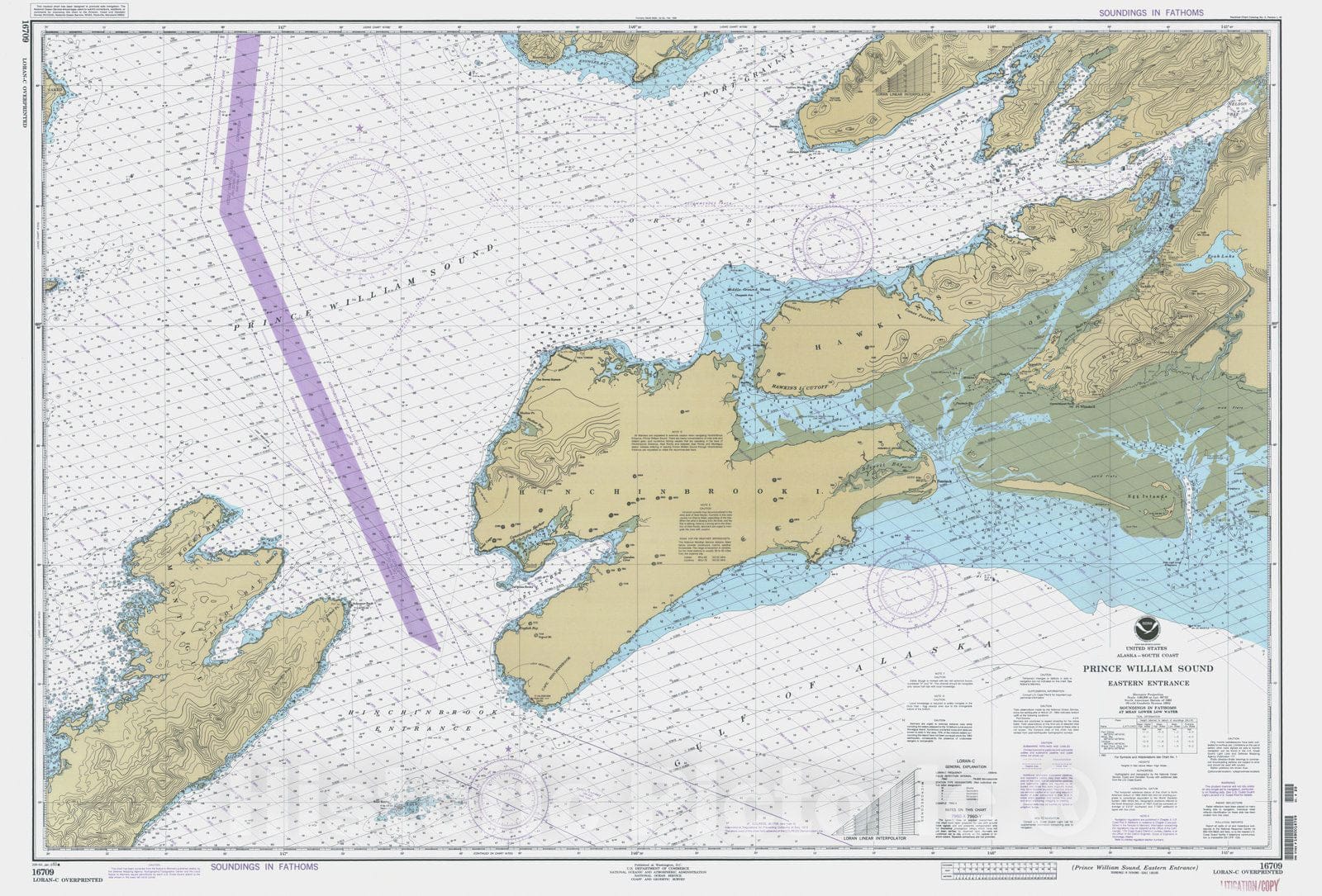 • .Historic Nautical Map - Prince William Sound Eastern Entrance, AK, 1993 NOAA Chart - Vintage Wall Art