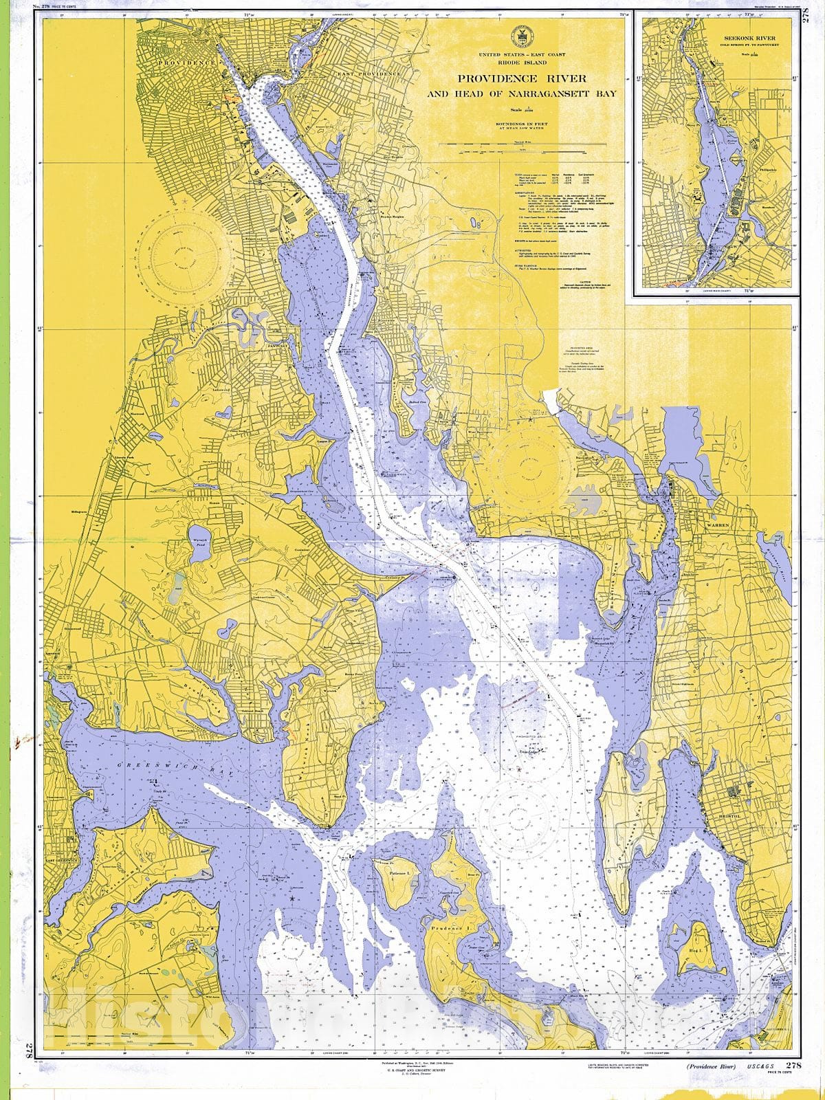 • .Historic Nautical Map - Providence River And Head Of Naragansett Bay, 1946 NOAA Chart - Vintage Wall Art
