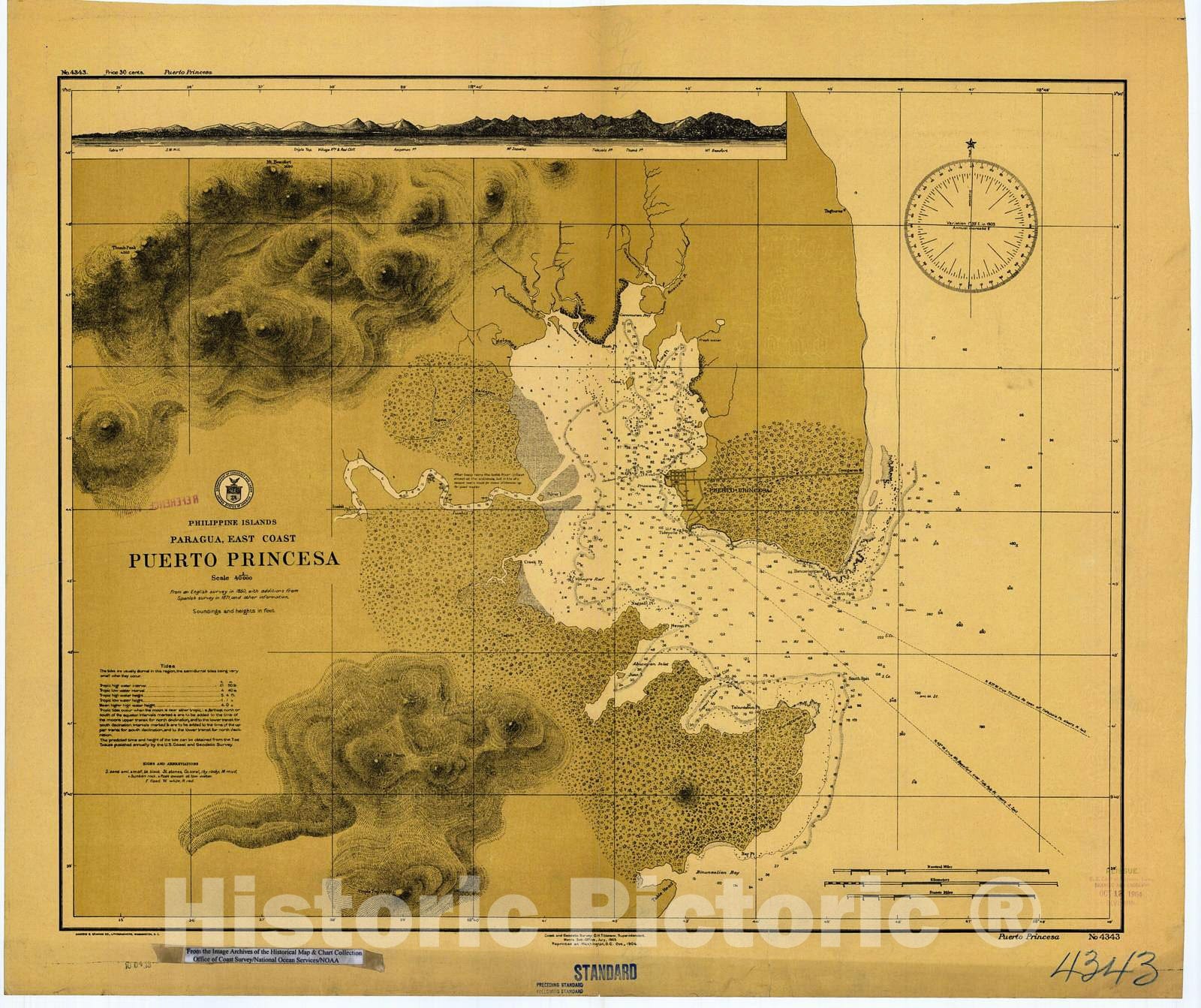 Historic Nautical Map - Puerto Princesa, 1904 NOAA Chart - PHVintage Wall Art