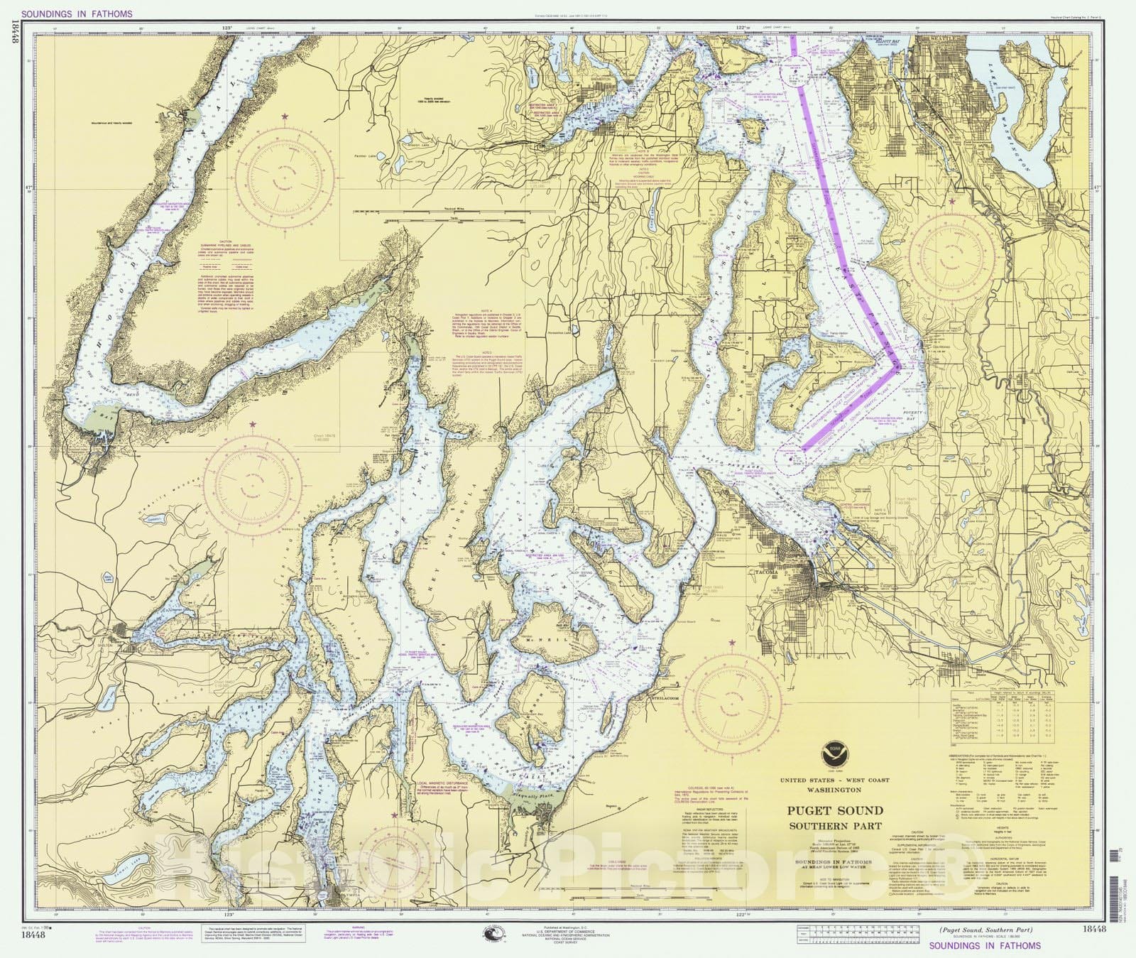 Historic Nautical Map - Puget Sound Southern Part, WA, 1998 NOAA Chart - Vintage Wall Art