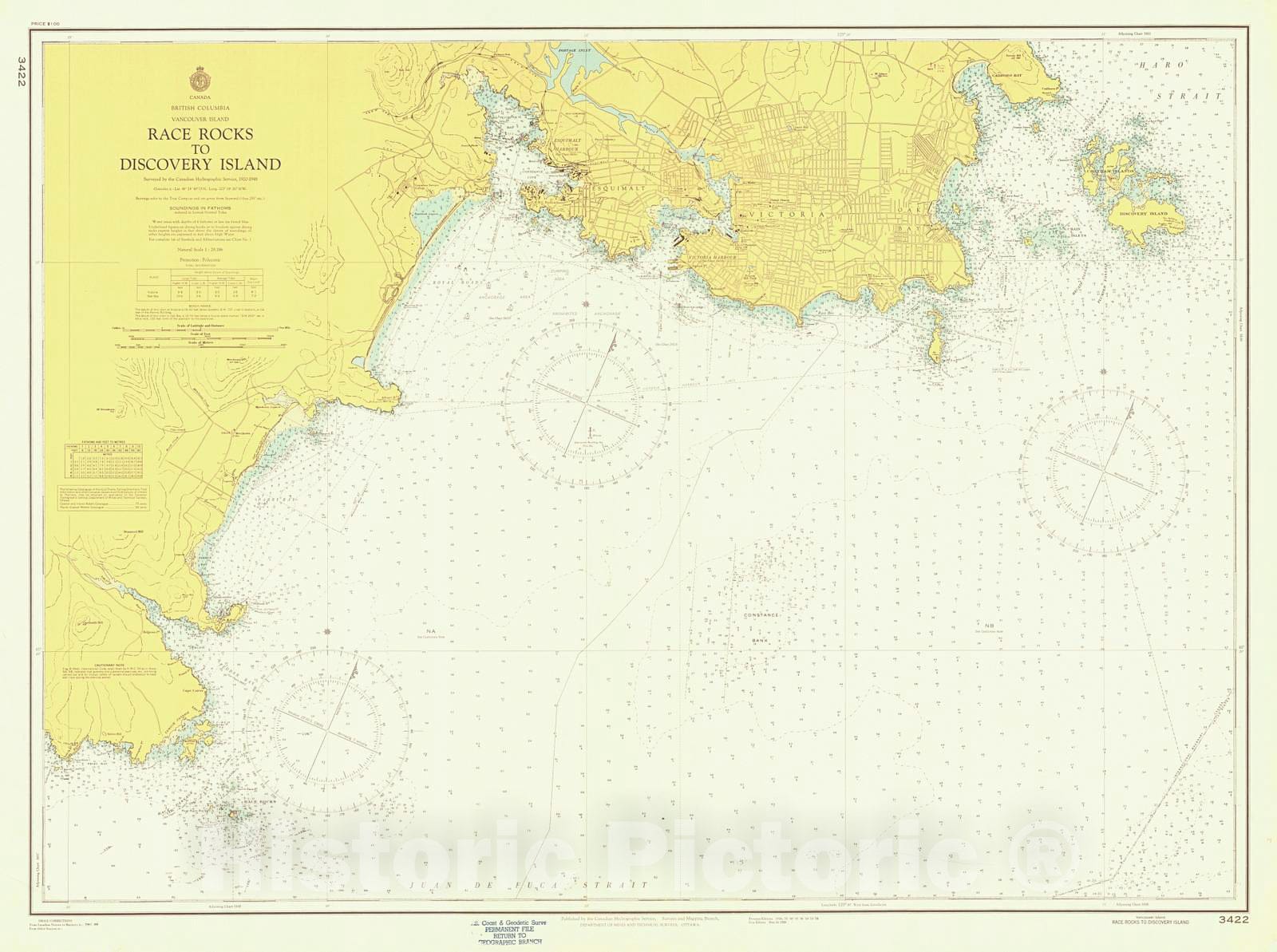 • Historic Nautical Map - Race Rocks To Discovery Islands, 1960 NOAA Chart - Vintage Wall Art