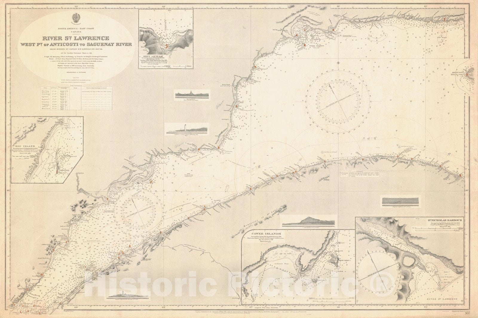• Historic Nautical Map - River St Lawrence West Pt Of Anticosti To Saguenay River, 1916 NOAA Chart - Vintage Wall Art