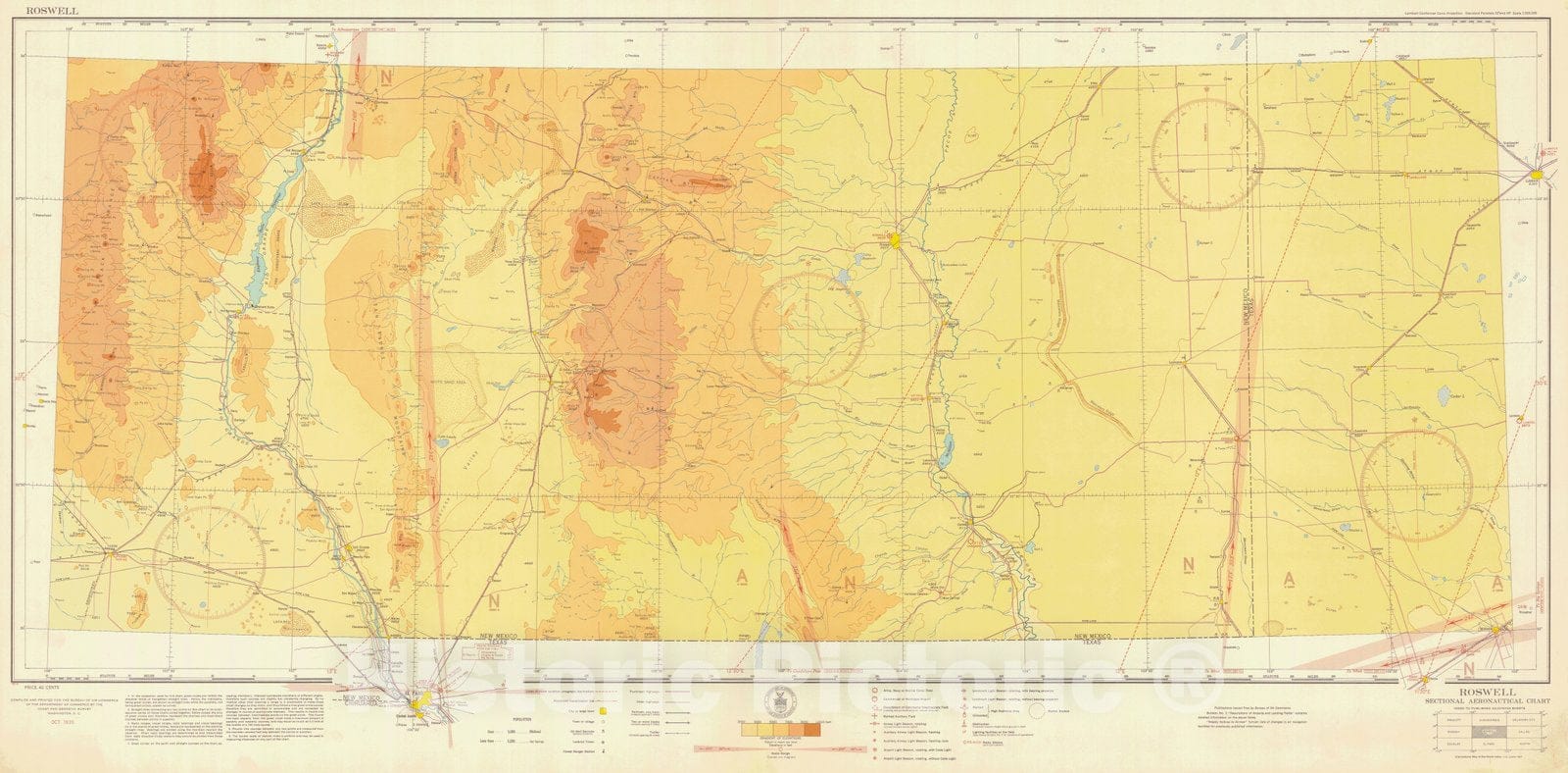 Historic Nautical Map - Roswell Sectional Aeronautical Chart, TX, NM, 1935 AeroNOAA Chart - Vintage Wall Art