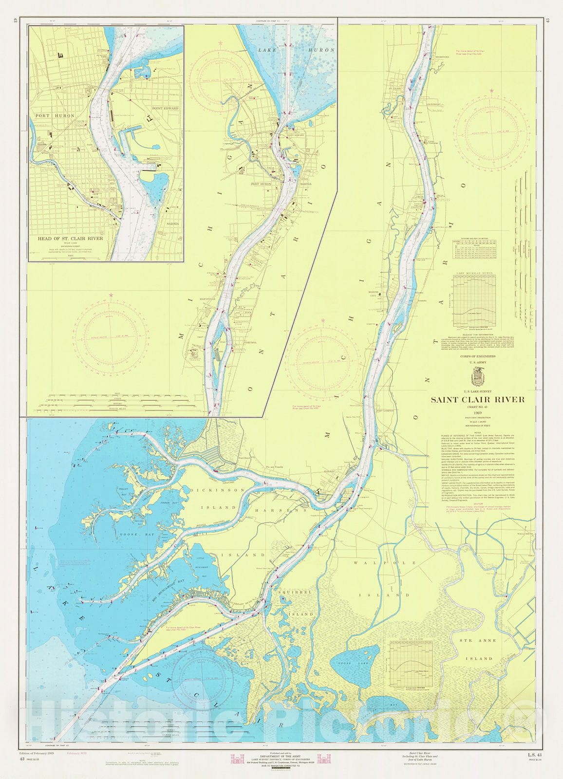 Historic Nautical Map - Saint Clair River Including St Clair Flats And Foot Of Lake Huron, 1969 NOAA Chart - Vintage Wall Art