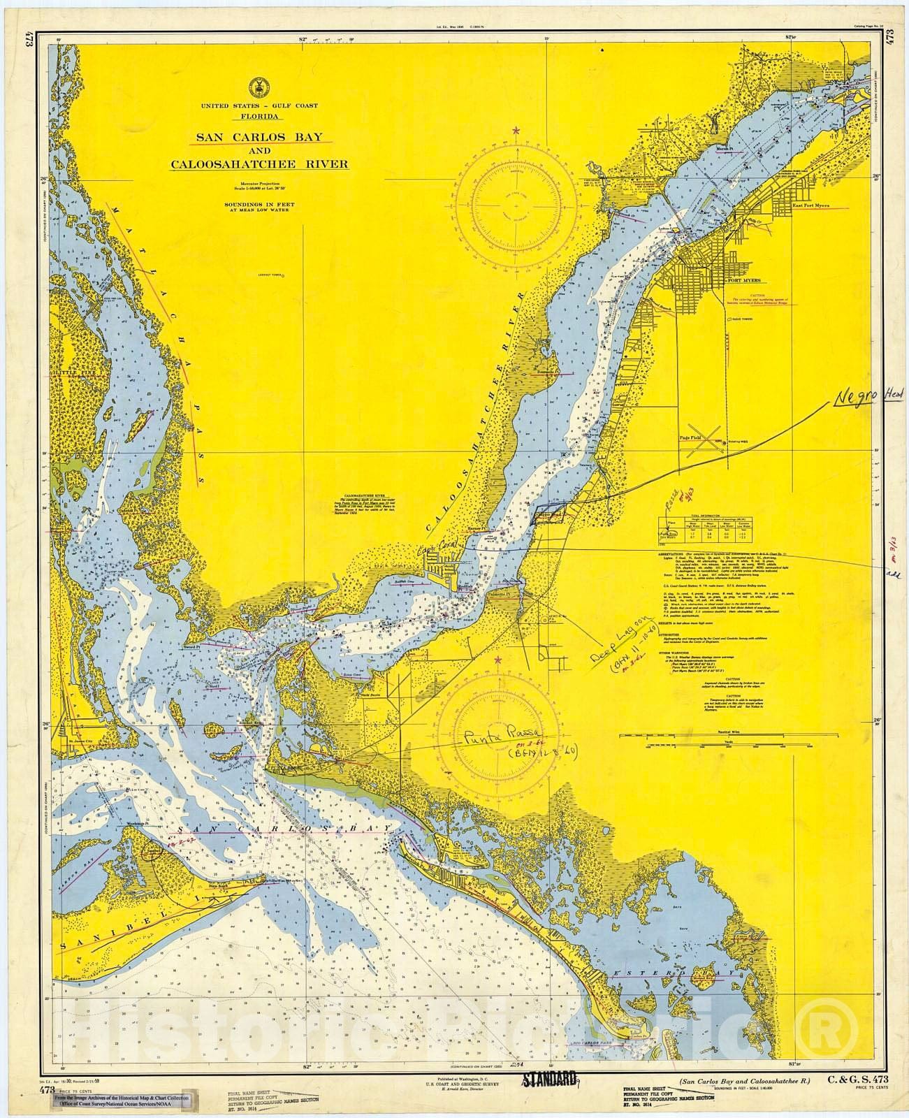 • .Historic Nautical Map - San Carlos Bay And Caloosahatchee R, 1959 NOAA Chart - Florida (FL) - Vintage Wall Art