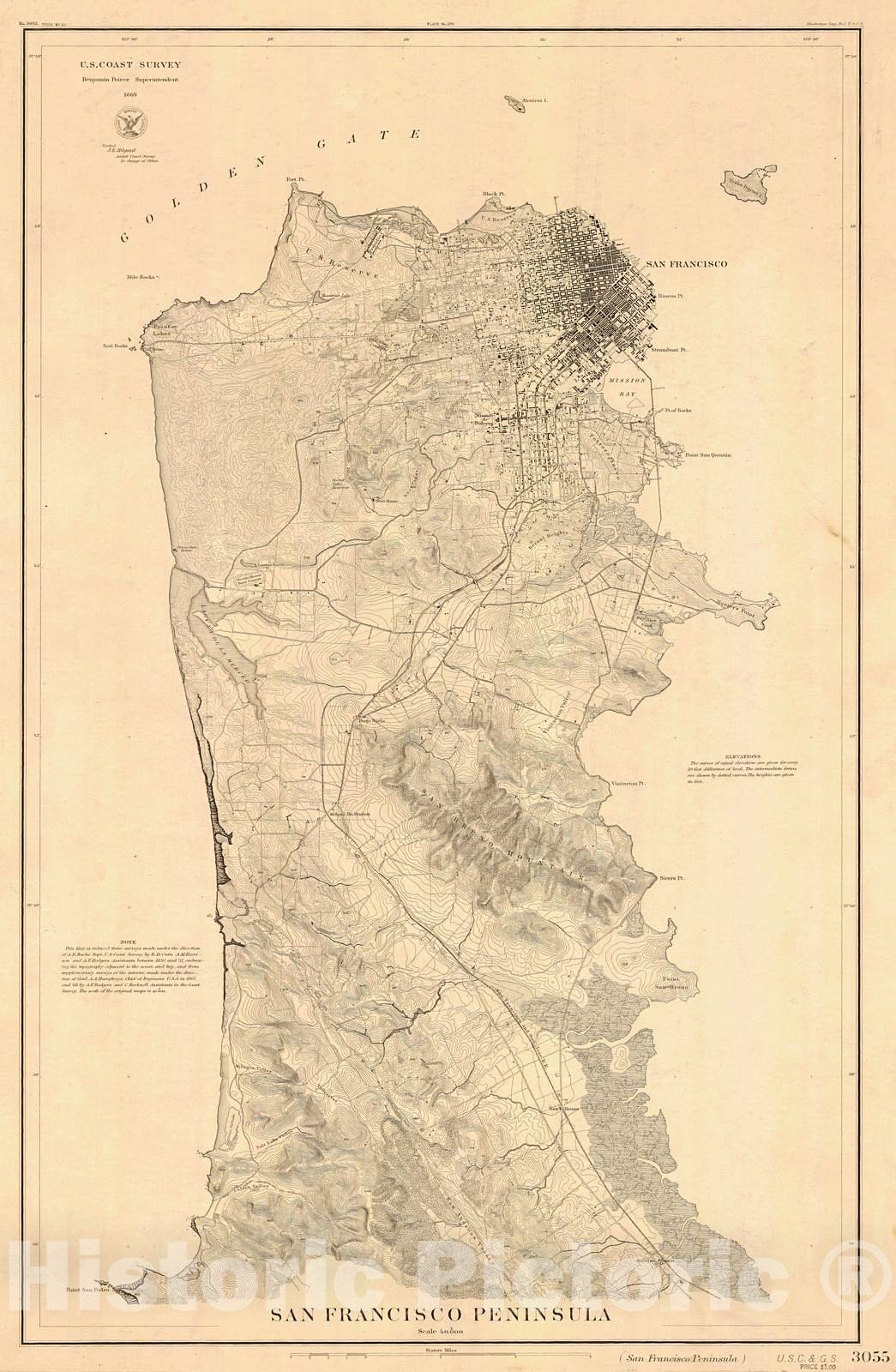 Historic Nautical Map - San Francisco Peninsula, 1869 NOAA Topographic Historic Nautical Map - California (CA) - Vintage Wall Art