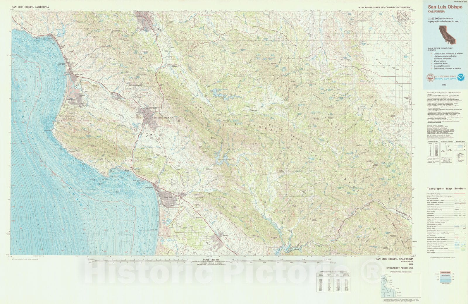 Historic Nautical Map - San Luis Obispo, CA, 1981 NOAA Topographic Bathymetric Historic Nautical Map - Vintage Wall Art