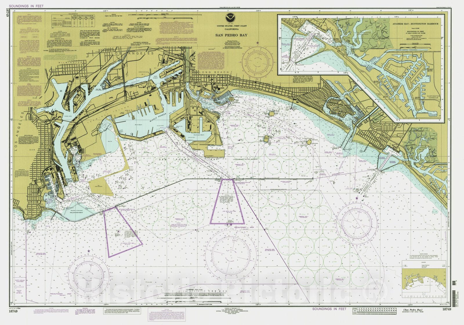 Historic Nautical Map - San Pedro Bay, CA, 1996 NOAA Chart - Vintage Wall Art