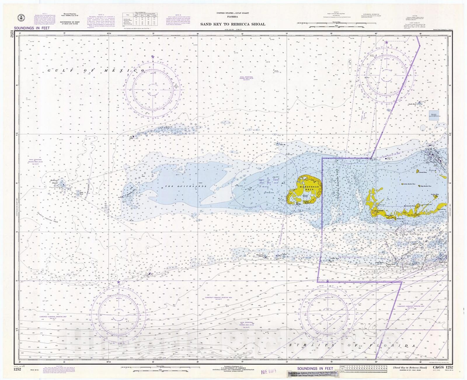 • .Historic Nautical Map - Sand Key To Rebecca Shoal, 1972 NOAA Chart - Florida (FL) - Vintage Wall Art