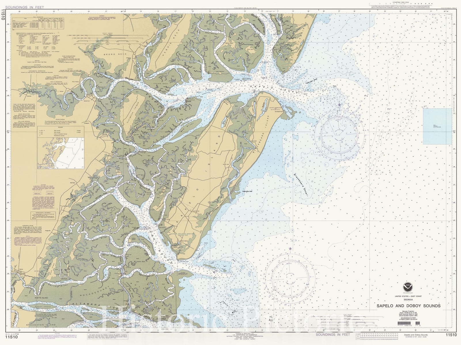 Historical Sapelo And Doboy Sounds | 24in x 26in 1995 Nautical Chart | GA Vintage Map | Fine Art Reproduction Print