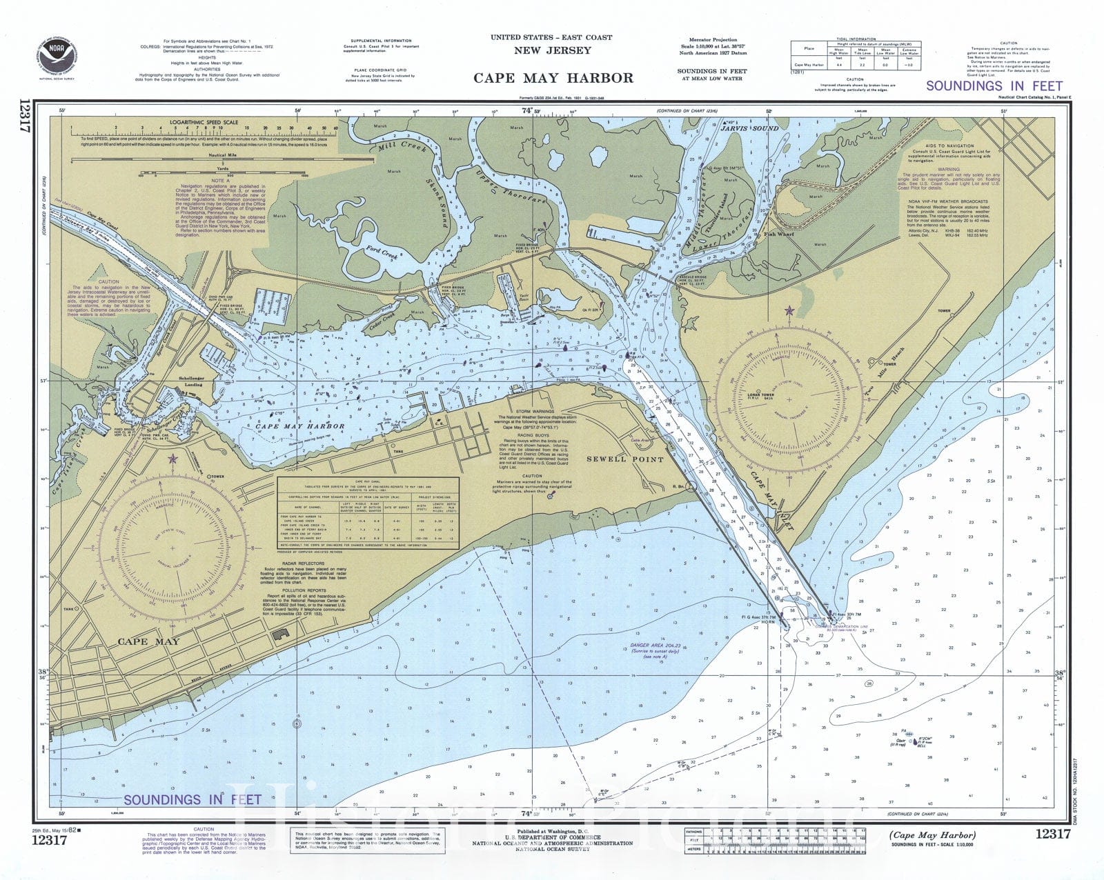 Historical Cape May Harbor | 24in x 30in 1982 Nautical Chart | NJ Vintage Map | Fine Art Reproduction Print