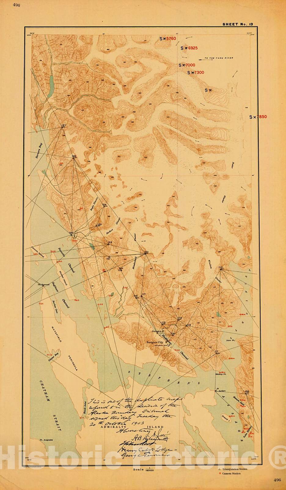 Historic Nautical Map - Sheet No. 13, 1903 NOAA Topographic Historic Nautical Map - Alaska (AK) - Vintage Wall Art