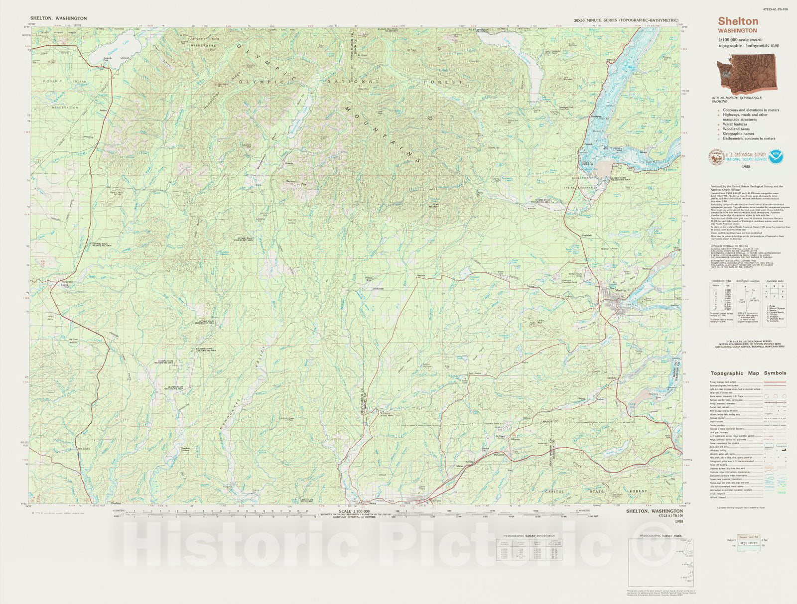 Historic Nautical Map - Shelton, WA, 1988 NOAA Topographic Bathymetric Historic Nautical Map - Vintage Wall Art