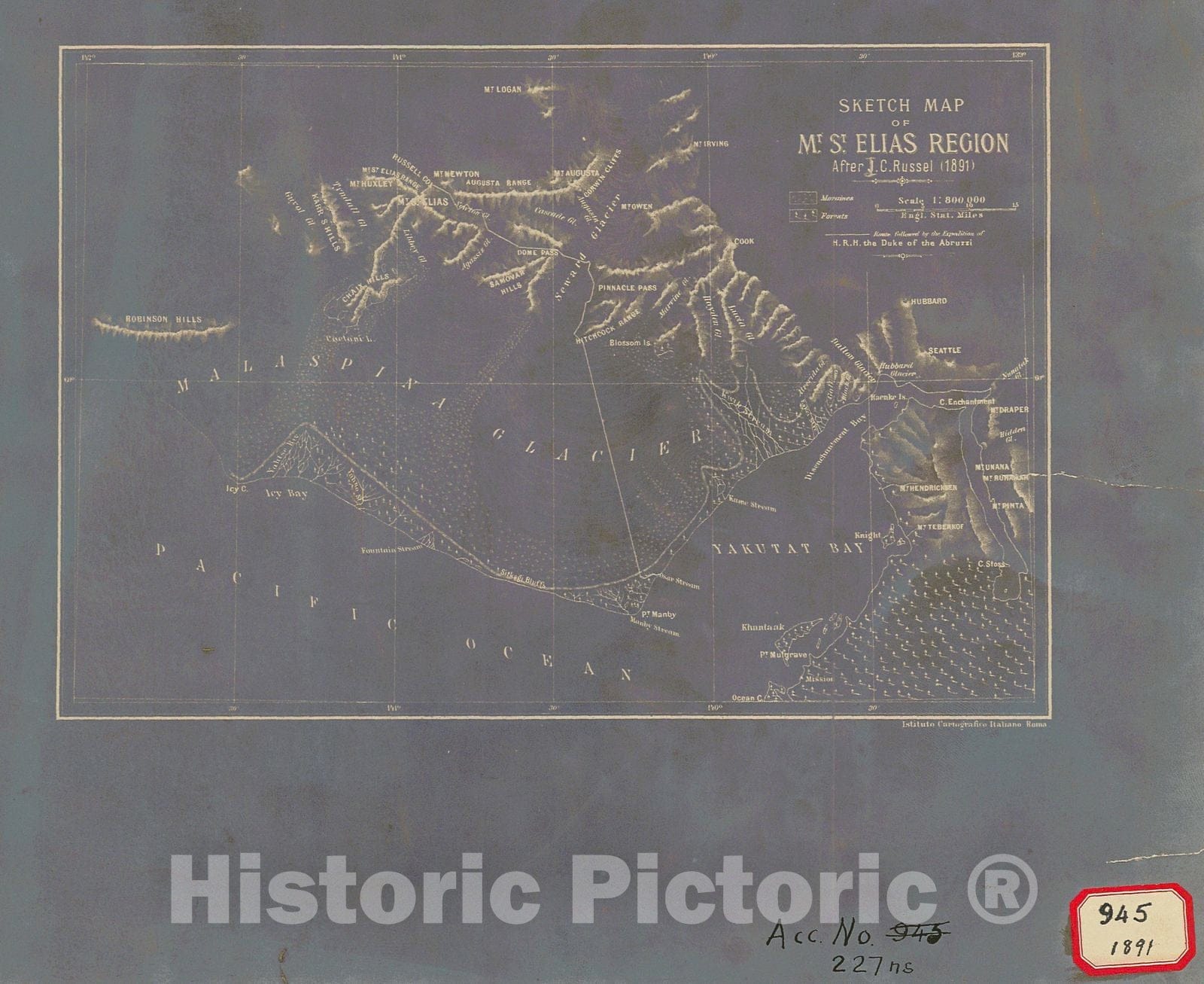 Historic Nautical Map - Sketch Map Of Mt St Elias Region, 1891 NOAA Cartographic - Vintage Wall Art