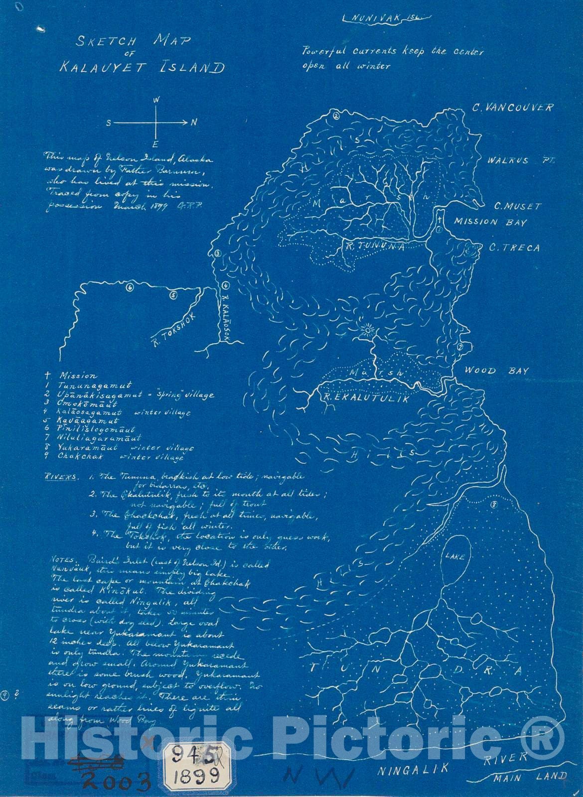 Historic Nautical Map - Sketch Map Of Kalauyet Island, 1899 NOAA Cartographic - Alaska (AK) - Vintage Wall Art