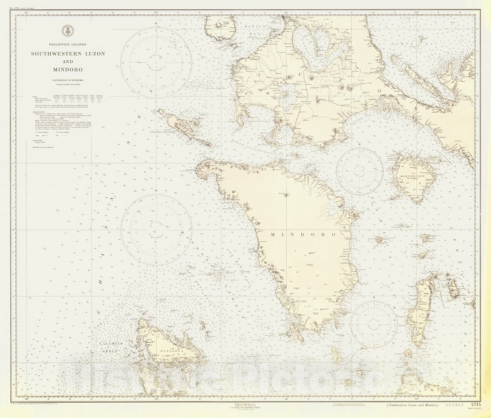 Historic Nautical Map - Southwestern Luzon And Mindoro, 1951 NOAA Chart - PHVintage Wall Art